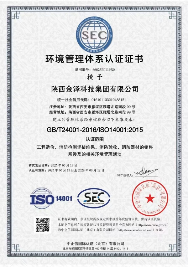 环境管理体系认证证书